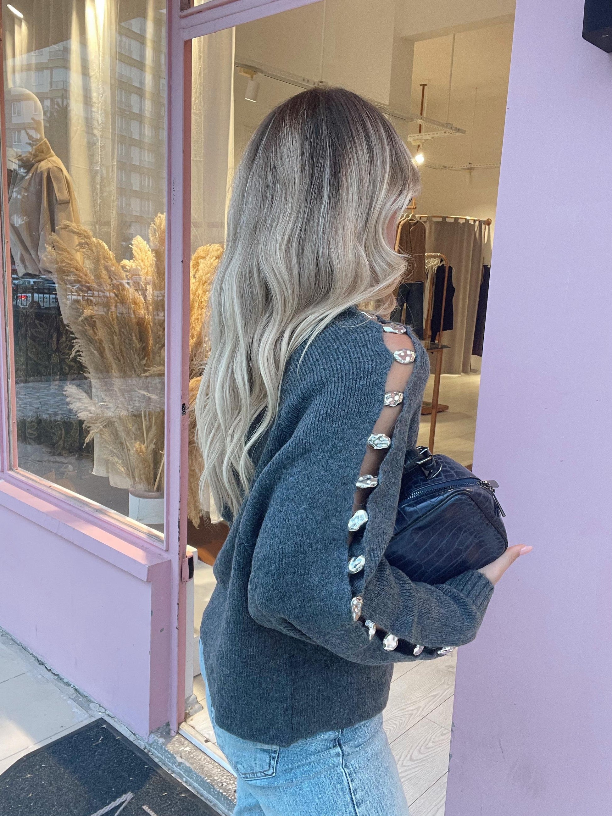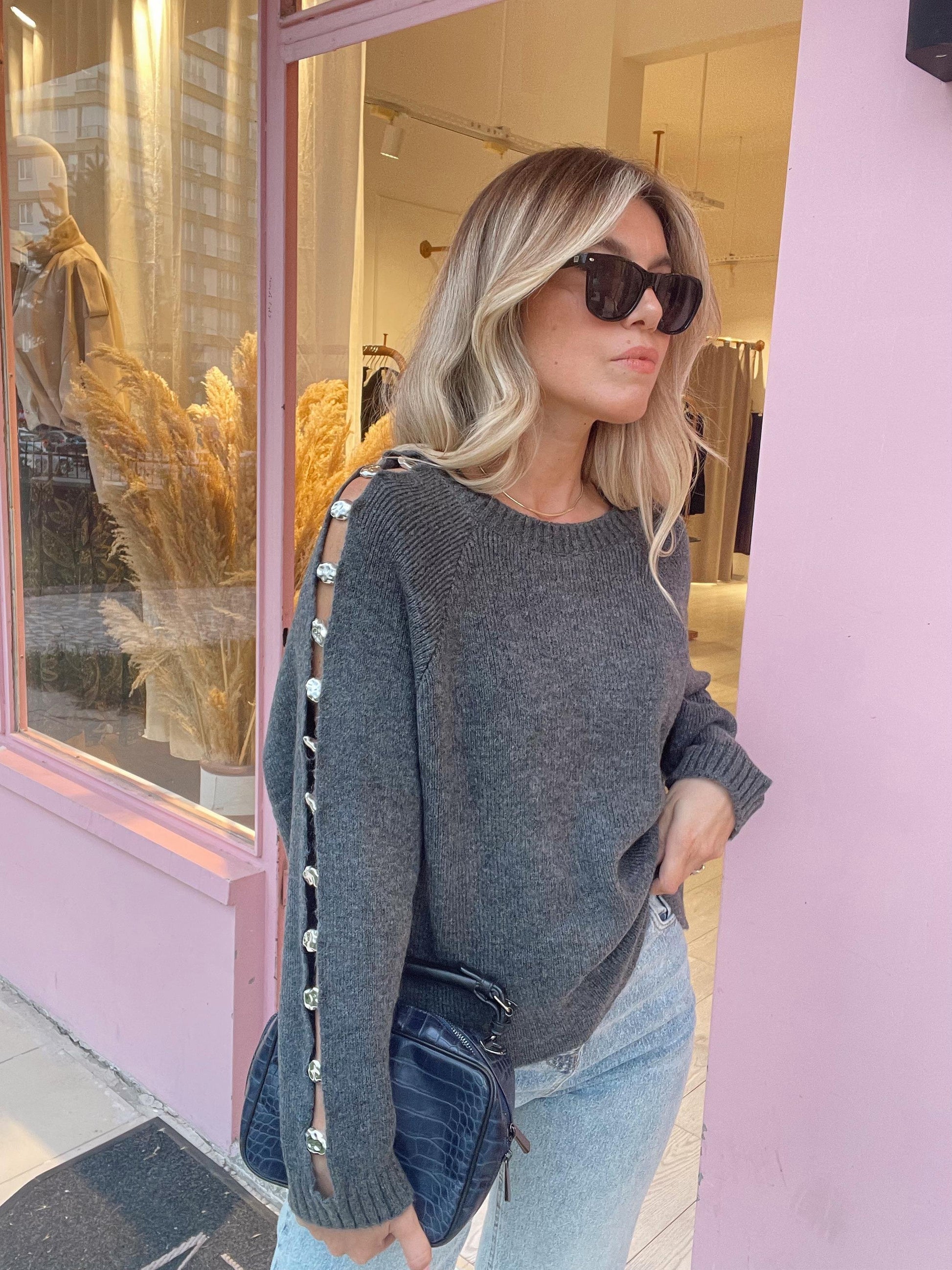 Anthracite Sleeve Silver Detailed Sweater