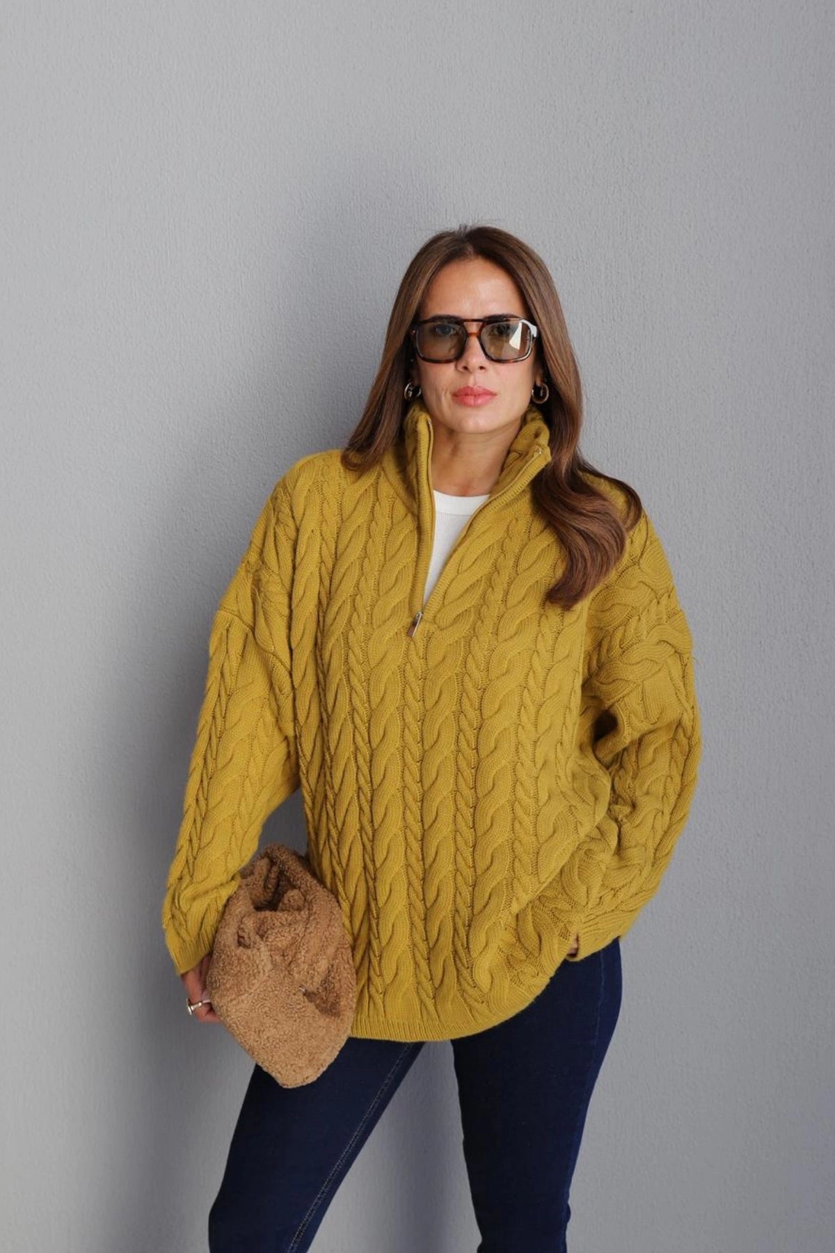 Braided Mustard Oversized Sweater Pre-Order (6-8) Days